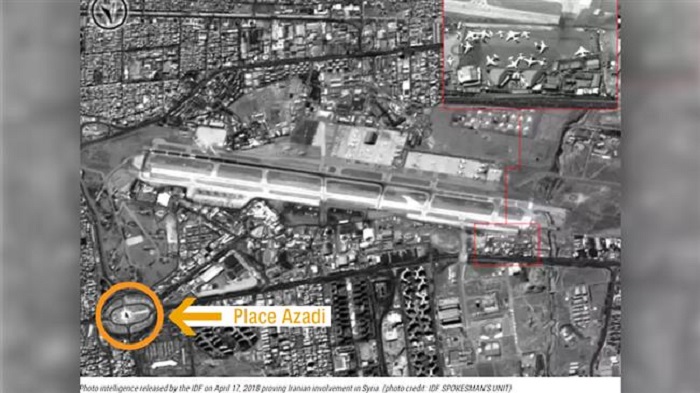 Sur cette soi-disant image du renseignement militaire israélien, la place Azadi de Téhéran est bien visible, pas très loin des pistes d’atterrissage de l’aéroport civil de Mehrabad.