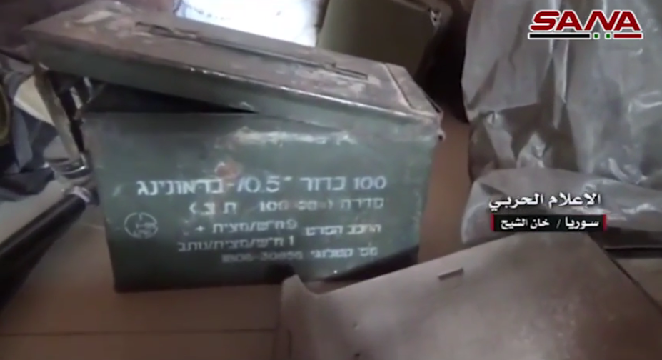Les sources syriennes ont publié des images faisant état de la découverte d’armes de fabrication américaine et israélienne en banlieue sud de Damas, dans la région de Khan al-Cheikh plus précisément.