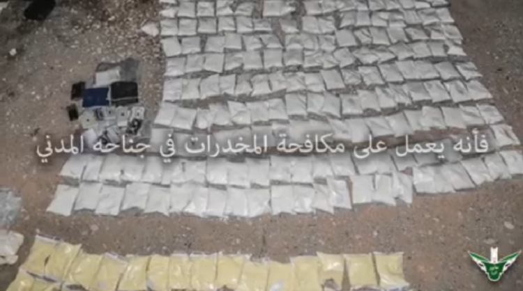 Maghawir al-Thawra a fait part de cette saisie de drogue dans une vidéo publiée sur sa page Facebook, commentée en arabe et en anglais et qui s’apparente à un coup de communication.